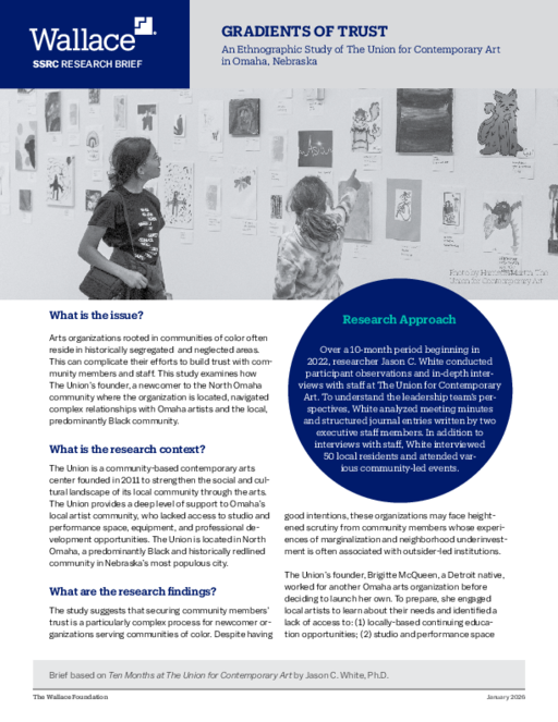 Leaders of arts organizations rooted in communities of color should not assume that community trust is forthcoming without careful attention to local stakeholders, community leaders, and gatekeepers.