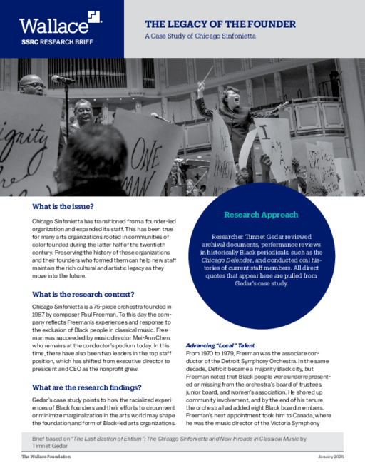The researcher found through their ethnographic research that preserving and understanding the histories of Black-founded and -led organizations like the Sinfonietta may help support future leaders and staff members as organizations expand. It may also be useful when developing updated fundraising strategies, community engagement efforts, and more.