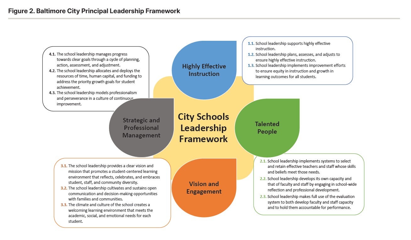 The specific strategies embraced by participating districts to place school leaders at the center of this work vary widely, according to the new report. For example, Baltimore City Public Schools developed a one-year, home-grown principal residency program tailored to the unique context and needs of the city’s schools. The program includes job-embedded leadership development, monthly professional learning seminars, and on-demand coaching.